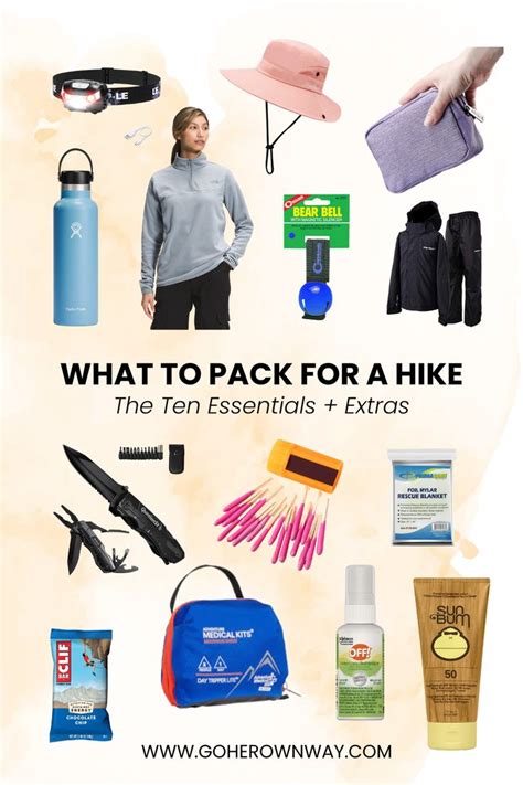 These are just a few recommendations to get you started. As you become more experienced with hiking, you may want to add additional items to your pack, such as hiking poles, a headlamp, or a lightweight tent.